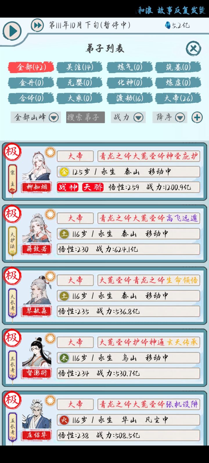 开局我招募了15000个弟子。境界名是自己取的连续丹药不断,补气丹破境丹转寿丹不断昆仑阵开启。成就大能的也只有1%左右,后面再招募20000个弟子来补。#游戏讨论