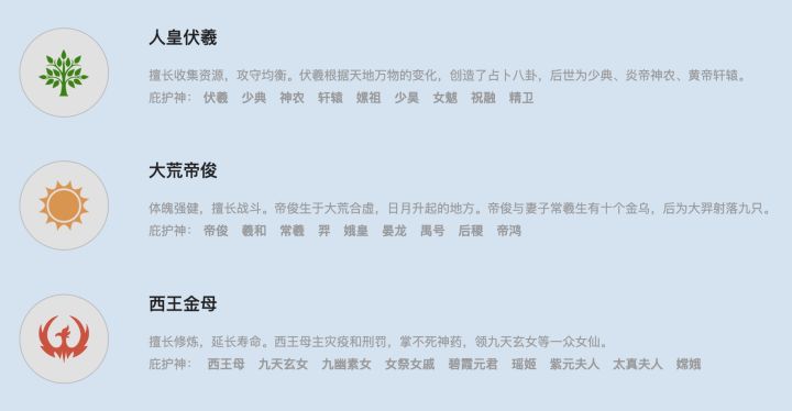 #游戏攻略 #单机游戏 #上古宗门 选择神系:三大神系人皇伏羲、大荒帝俊、西王金母。每个神系的神力不同,且有专属的天赋。在宗门培养出第一个仙人,且大陆上本神系的弟子最多时,会有神使降临,进一步提升本神系的神力。玩家在选择了初始神系后,仍然可以招募其他神系弟子,不过其他神系弟子无法进行庇护神的选择。【人皇伏羲】 神力全面提升种植、开采、探索的效率,能快速积累资源,发展较快,适合种田玩家。