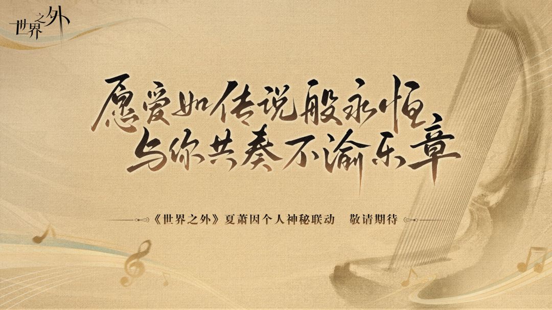 “为你写歌千千万,旋律里是我未尽的诗篇” 🎼愿爱如传说般永恒,与你共奏不渝乐章。 🎵《世界之外》夏萧因生日组曲,现已上架网易云音乐 ✦欢迎点击:https://music.163.com/# /album?id=246856759;或进入网易云音乐搜索“世界之外「夏萧因」生日主题专辑”进行收听。 🎵《世界之外》夏萧因个人神秘联动,正在筹备中 ✦更多联动信息,请期待后续官方资讯。 “世界无限