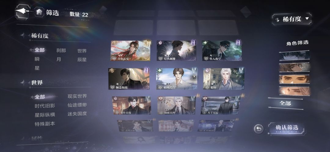 #世界之外此间即无间创作征集令 《世界之外》简易攻略 ①游戏类型 剧情向,无限流题材,关卡为简单粗暴数值比拼,当了战力党就成不了图鉴党,一般这种游戏还是情感需求更大,但除了战力也没别的好出攻略的地方了。 ②战力组成 能提升战力的养成部分,主要是身份卡和血脉比较大,藏品提升较小,也是有的。比较特别一点的卡是世界卡,需要叠卡(就是重复抽取的意思,叠花)才有高强度,不然就一张一般情况不如满练月卡。 ③
