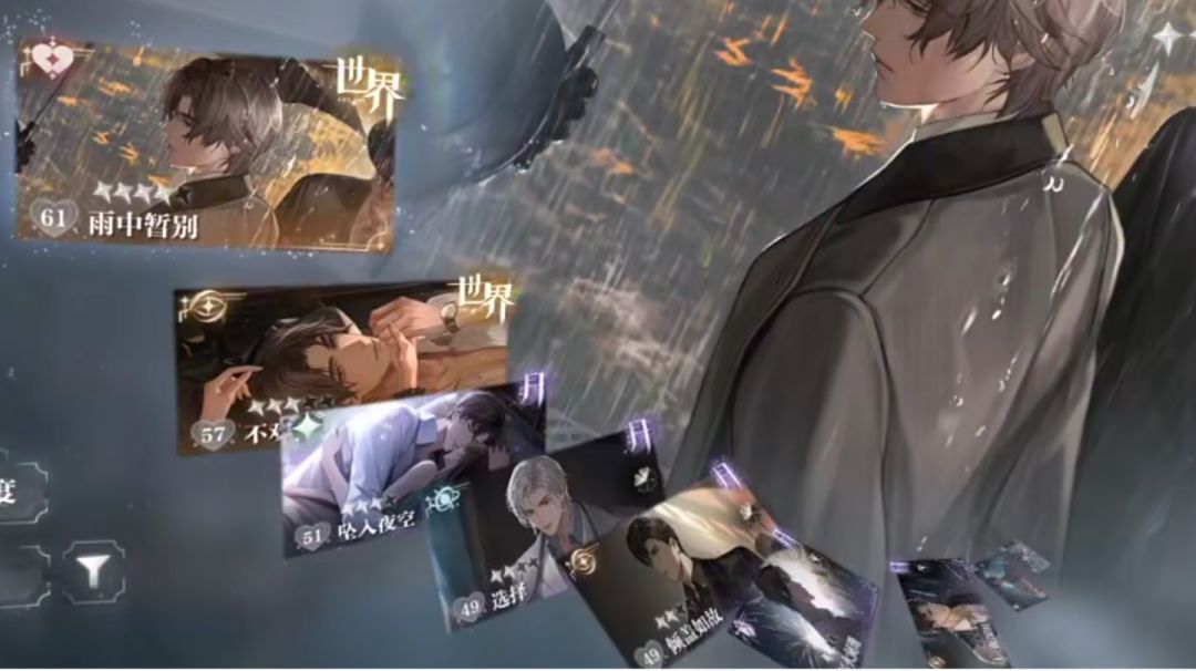 《世界之外》的总体玩法就是过主线和支线剧情,了解我们与男主们之间的故事。在这些主线与支线中,会有关卡挑战,在游戏中就需要自身及借助【侧影】的力量来通关。【侧影】,即为卡牌!而游戏从初期到适应期,每个关卡需要的战力都是依次上涨的,这也就说明我们需要培养这些卡牌。说到这里了,我们就来详细讲讲世界之外的卡牌玩法。卡牌在世界之外中的叫法为【侧影】(主界面左下角第二个),想获得【侧影】就要到【世界之间】(游