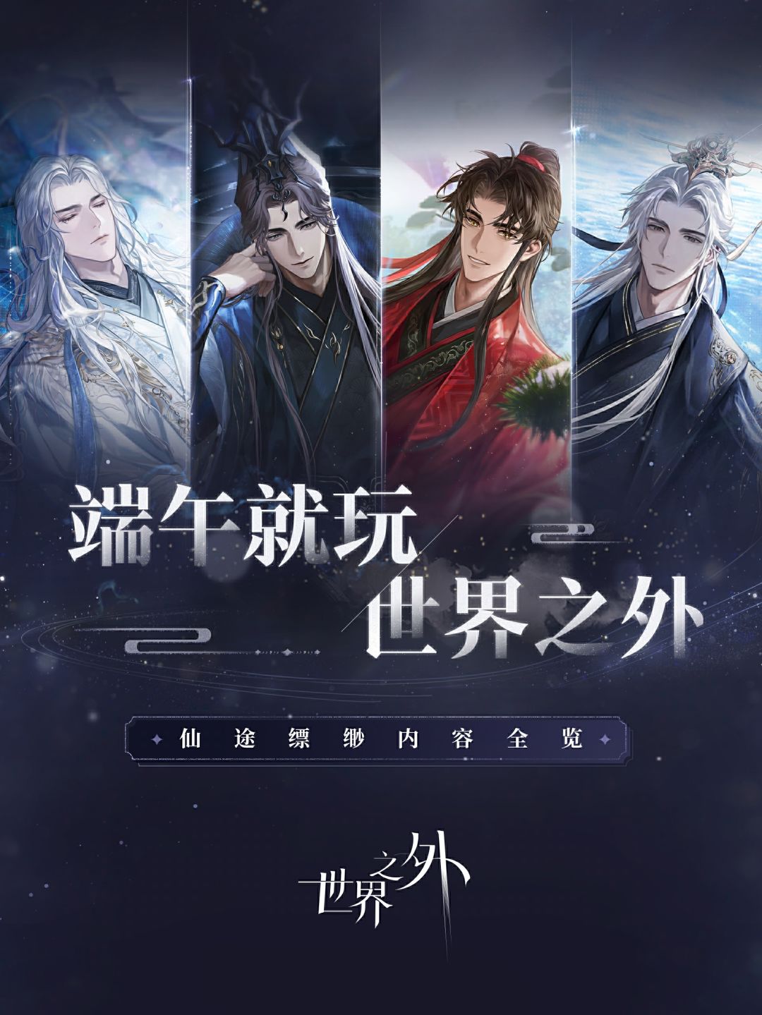 #世界之外此间即无间创作征集令 四天王: 柏源---加冕时刻 夏萧因-临别 顾时夜-不觉日长 易遇---妄念 情人节混池: 夏萧因-人间烟火 易遇---甜蜜记忆 顾时夜-人海相遇 柏源---偶有钟情 520混池: 顾时夜-消融 易遇---咫尺 柏源---光影错 夏萧因-人间无数 三极卡(三个数值突出) 柏源---光坠星海,待你归来,剑照九州月 顾时夜-夜霜侵怀,存在与消弭,掌中砂 易遇--