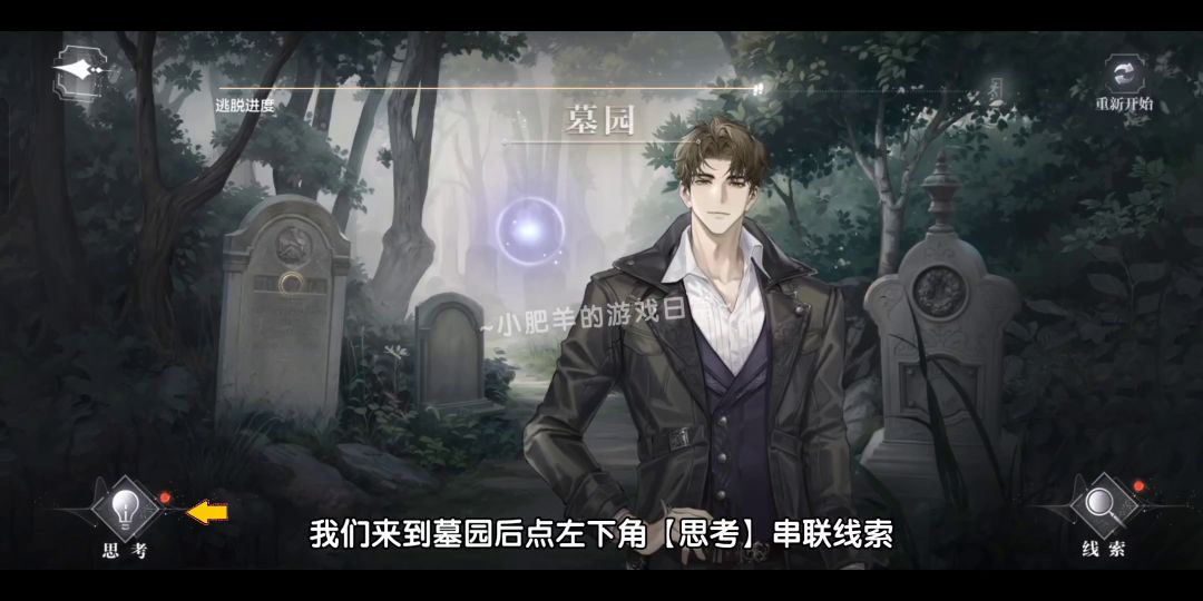 一、柏源——暗夜庄园 1.盛大演出(成功结局) 第一个场景(6号房间)——正常过剧情,离开房间 第二个场景(廊道)——正常收集所有的线索,返回房间 第三个场景(墓园)——正常收集所有的线索后,思考得出"非人联盟",如图 接着与柏源对话"询问其身份"—"分享调查名单"—"走进"墓园深处—墓碑处"查看碑文",解密过程如下图 然后正常与柏源对话,最后选择"邀请柏源登船"达成成功结局. 2.萤火绽放(通关