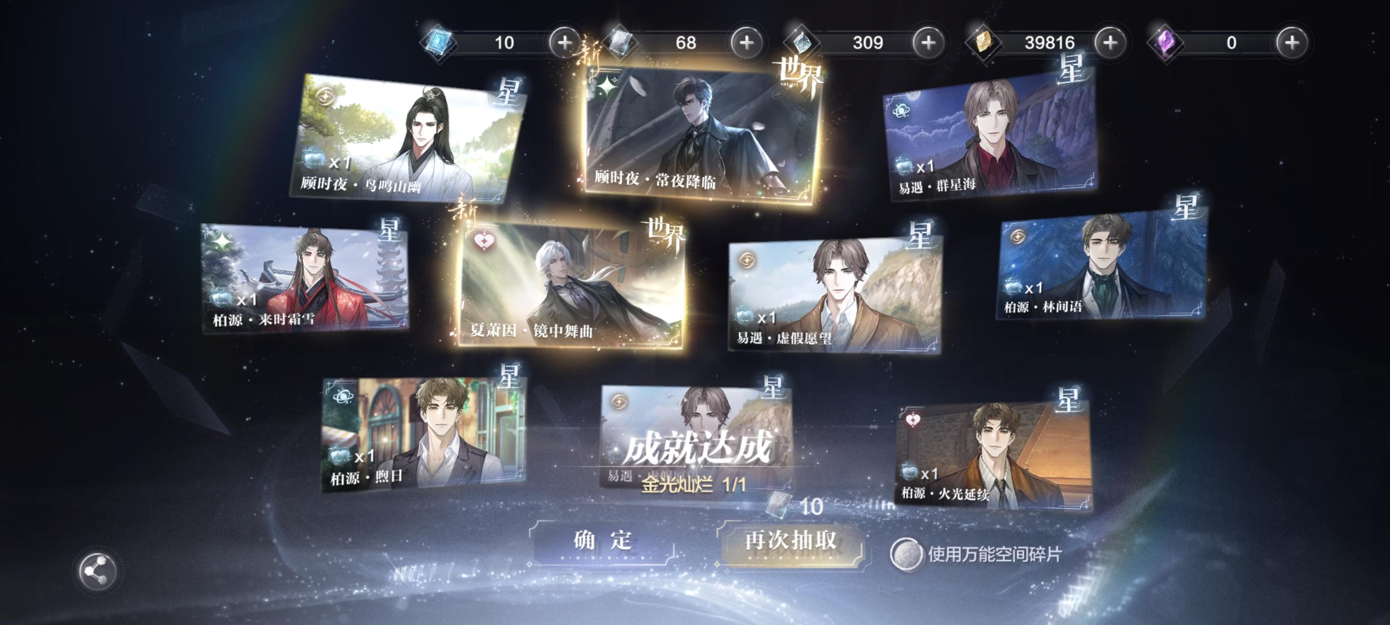 忘了几抽抽到的了总之共260抽易三张,顾一张,柏一张,夏一张歪易一张,歪夏一张 ,自选没开一张