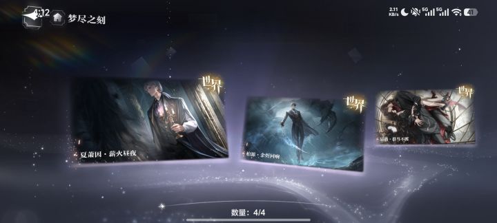 《世界之外》梦尽之刻限时活动上线,周年限定玩家氪爆家人们注意啦,由网易游戏研发并运营,并被称之为六大“国乙”之一的无限流言情手游《世界之外》(玩家戏称为大强),近日进行了更新并推出了一个全新的限时卡池“梦尽之刻”咱们的四位男主顾时夜、易遇、柏源、夏萧因都拥有了全新的限定世界卡,更新完后,大家有晒出货的,也有吐槽歪卡的,玩家社区看起来蛮热闹的。因为大强这次二周年送的也挺大方的,玩家们也乐于氪