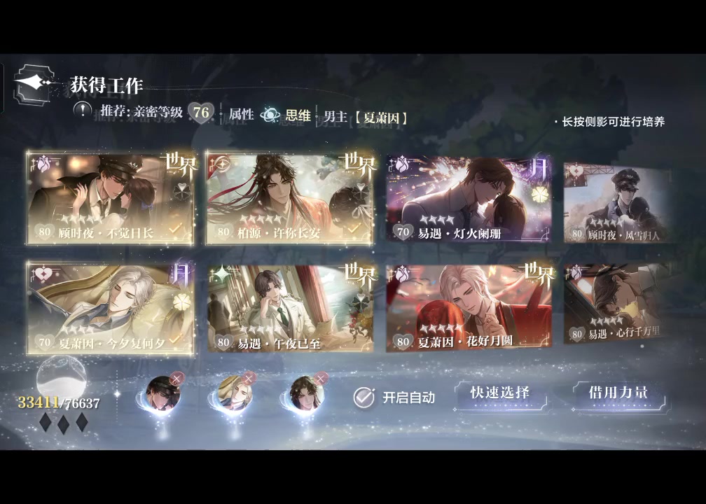 运气好第一个关卡就弄到了情迷意乱直接第一个卡满星,我震惊了,要知道人家还是在上个剧情里面卡关的人🥺🥺🥺,录了下一个关卡的过程如上,这个属性我最低,其它几乎都是最后分数是2*所需分数,或者一张卡叠满分数,别太爽。本养老玩家有点自信了,劝官方多出点更难的关卡给点挑战性或者多出点剧情嘶哈嘶哈😚😚🤤🤤🤤