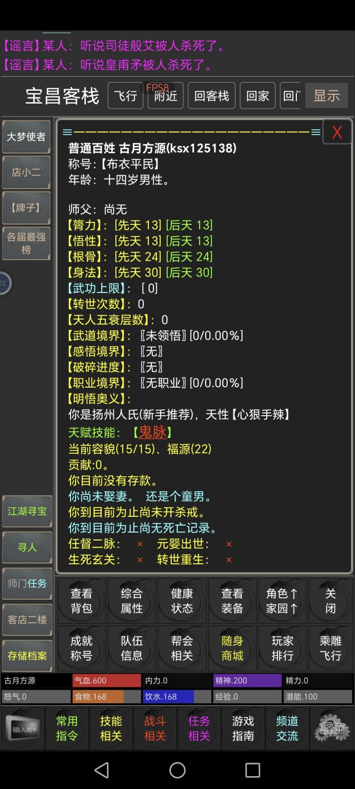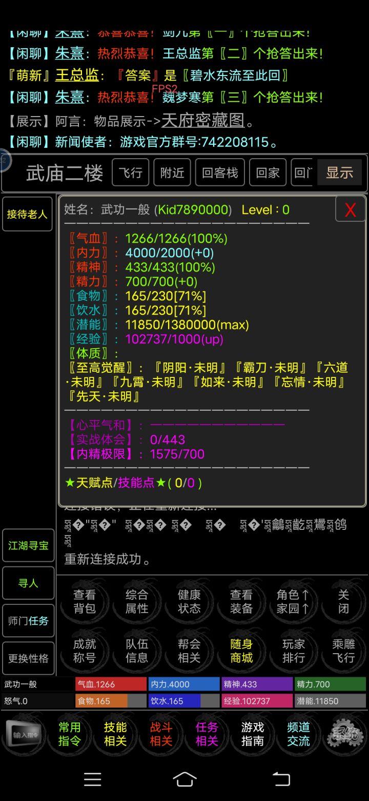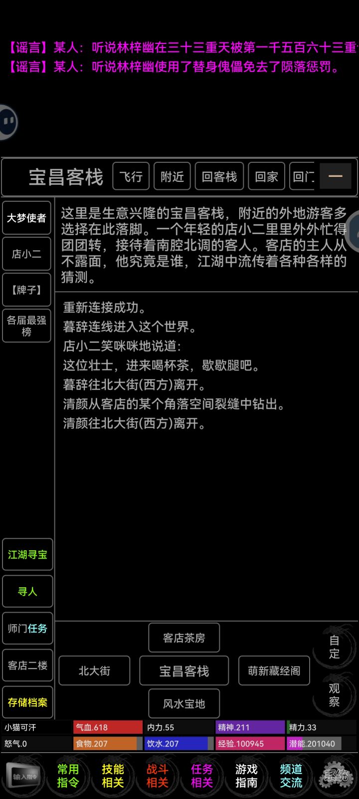 最近陷入到一个奇怪的循环,在tap上扫游戏,但是却不想玩,然后就删了,直到前两天我翻到这个游戏,接下来从新鲜度,丰富度,自由度,真实度四个角度说一下首先是新鲜度,因为以前玩过放置江湖那种的武侠题材养成游戏,所以最开始以为这款游戏也是类似那种的,但是上手之后发现差别很大,感觉放置江湖就还是局限性很大,或者说感觉少点新意,但是这个游戏却不一样,其中一个亮点就是mud,很多想不到的功能都藏在其中,输代