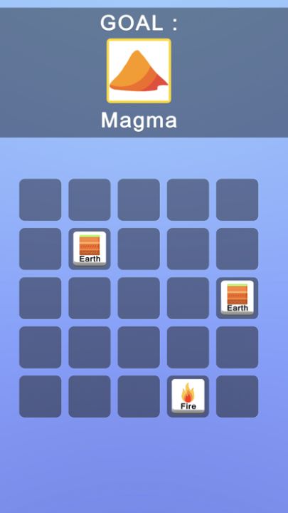 Tap on a tile to merge aligned elements, and try to create the goal element!