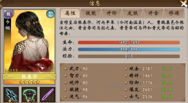本篇为新手入门介绍,大佬划走不送。 『武将兵种』(红字标注1) 本游戏兵种大致上可分为以下几类 1.策士类 优势为高额的精神力,可打出高额的法术伤害 2.骑兵类 优势为物理攻击及强大的机动性 3.步兵类 优势为高额的防御力 4.弓兵类 优势为远程物理攻击 点击红字“1”可查看兵种优缺点,如下图 『属性介面』 主要展现武将的各类属性 蓝字一号为攻击精神等属性 攻击:影响物理攻击伤害和物理技能伤害 精