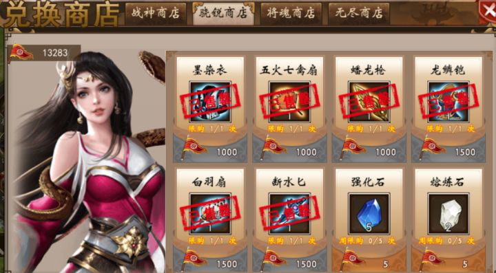 骁锐币现在只可以兑换6件装备及强化石、熔炼石。以前有士兵系统,骁锐币可兑换士兵碎片提升士兵星级。现在士兵系统被移除。骁锐币如果兑换完六件装备几乎别无他用。故建议是否可以新增一些装备用于骁锐币兑换?另外战神币面临同样问题。老玩家大多战神币溢出无可兑换,也就每周换点卷轴和桃子。由于战神装数量远多于骁锐装,现在战神币用处比骁锐币稍好一些。