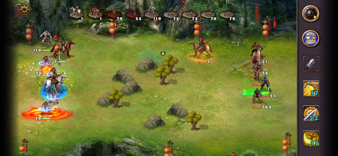甘宁穿血煞套向下拿双动,旁边就是孙权。战斗开始甘宁贴身射手放大,优先秒掉远程兵种。