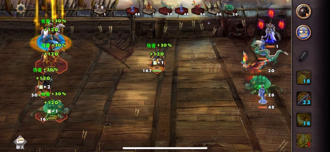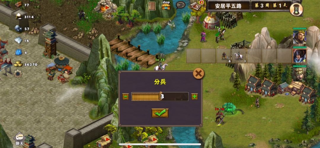 这关的三星过关条件是9周4天内通关地图,并在挑战过程中获得8次三星战斗评价,由于没买张辽英雄令,所以只能使用系统英雄来战斗,战术卡使用:雀炎、朱雀之痕、农耕术、炼金术,开局第一天乐进把其他兵全给张辽,留下轻骑兵全部分组去打旁边金矿狼王,注意刷战场不要有给对面回血的建筑物(类似于烽火台),骑兵主要吸引伤害,乐进先杀boss,最后清小狼,只要能打过,损失多大都没问题,然后张辽把法师和先登给乐进,移动地