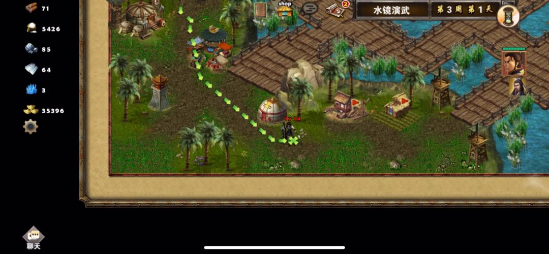 3周2李协出现在左边传送门旁边,孙权可以提前守在附近,这时候也差不多有90+丹阳武卒了,用孙权去打李协,试试丹阳的威力,李协带着一些虎豹骑和虎卫,虎卫移动距离比较低,要先杀虎豹骑,后面再打李协和虎卫,孙权开大给丹阳加盾,丹阳伤害确实不低,打败李协后贾诩招募山贼、收集资源,具体打法、行动路线详见视频!
