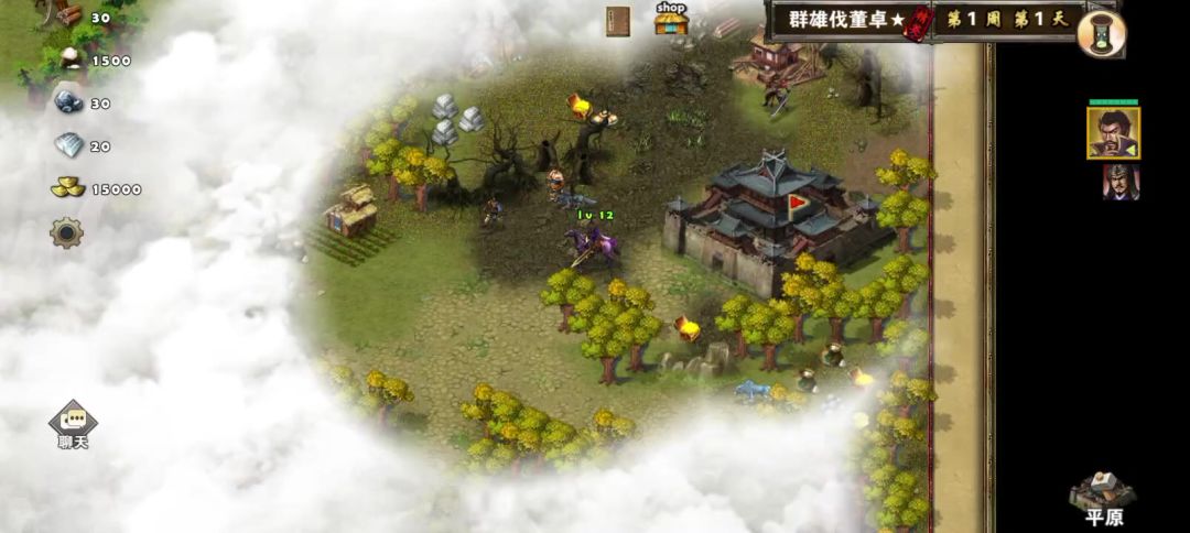 前面张合找到曹操后,曹操收下许褚和司马懿,往上走见人就打,注意要想三星过关,曹操要打够7场无损三星战斗(不能死兵,不然就不能达成三星战斗评价,英雄死了不影响三星战斗评价),我为了方便录视频所以没有追求三星战斗,1周7的时候营地周围会出现3个骑兵统领,不用带兵轻松无损打,其实战场建筑物越多越好打,可以利用司马懿大招联动不停的打建筑物(司马懿要装备九天惊雷杖),然后曹操往右打过去,打够7场三星战斗