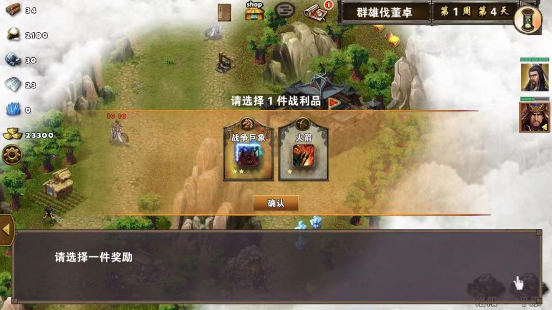 有一定基础了打的就快了,一开局选个司马懿,带上法系套,沿途能吃属性就吃上个智力增加伤害,本局的吕布打掉他可以得一个吕布宝箱,能有几率开出方天画戟。一般都了亮个图鉴就不用再打了,基本用不上这个武器,司马懿直接去扣关攻打董卓,兵力不多的董胖子想不到这么快就兵临城下了。司马大招逐个收割,最后送董卓回家,大功告成,去领你今天的任务奖励吧。