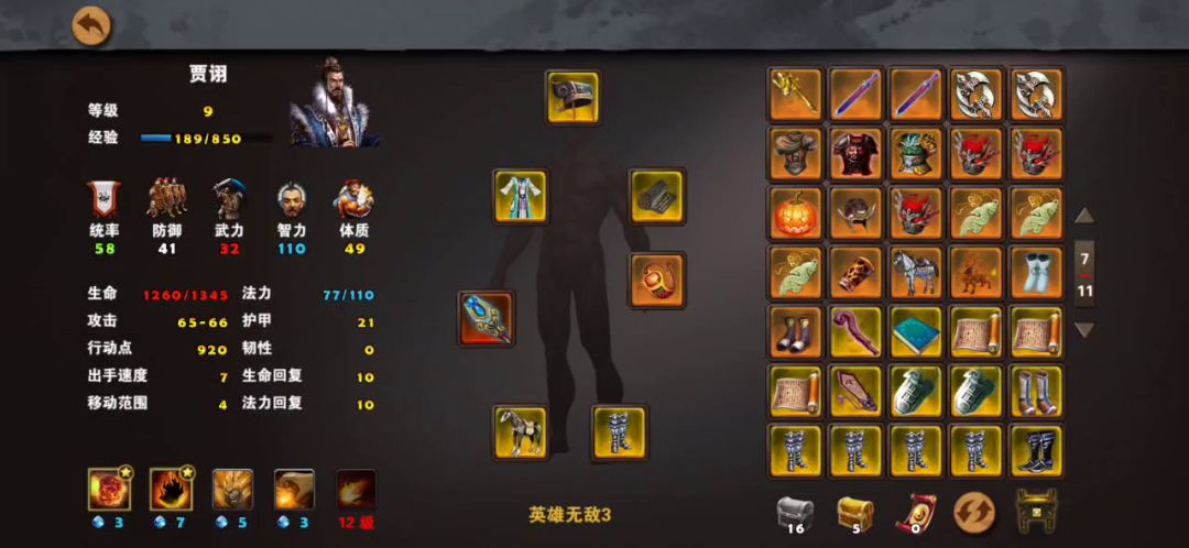 奖励:投掷改良、神匠术 投掷改良:投石车和霹雳车在被敌人贴身的情况下还可以进行攻击 神匠术:兵工厂每周能额外生产3架攻城器械 关卡难度:★ 第一关:英雄无敌1 推荐英雄:贾诩(吕布、太史慈、孙权) 英雄出装:九天惊雷仗、天玄道袍、万灵头、将军鞋、招财猫、龙佩、太平要术 前期出装:天公之怒1级(火精剑4级、九天惊雷仗)、天师道袍4级(天玄道袍9级)、天罗冠4级(南瓜头1级)、灰岩重鞋4级、铜雀指环1