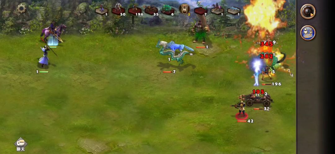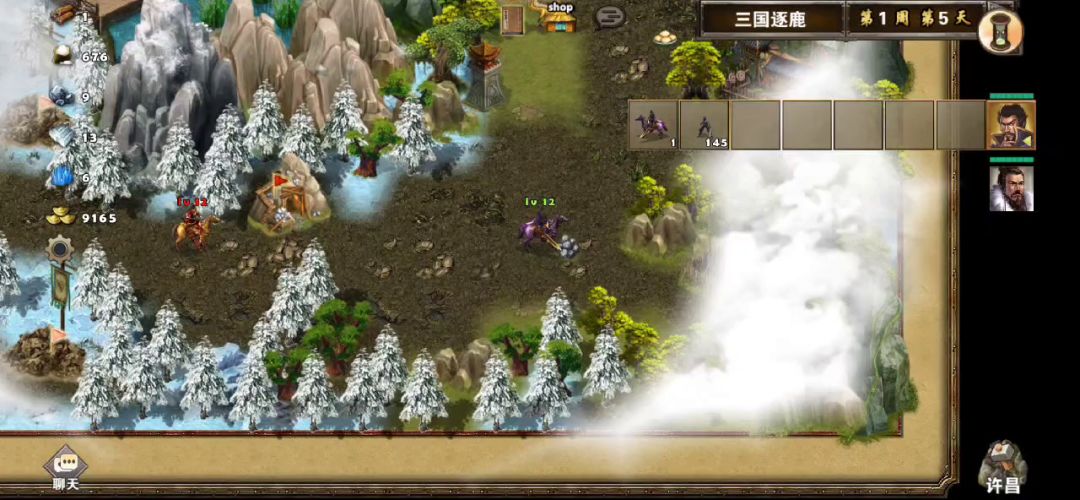 把自己右边资源都占领后,大概2周5左右来到金轮法王旁边,而且霍都也加入了金轮法王队伍,早知道前面就不该留他性命,现在又得打他一次,刘备装备寒风或者月光,这样第一回合对面两个boss就够不到打你,刷开局霍都不用扇子,第一次打主要就是尽量多的消耗对面的兵,然后桃花岛复活,把门口的兵招募入伍分组过去再打金轮法王,还是刷开局霍都不使用扇子,对面就剩三个光杆boss了,兵跑开吸引伤害,逐个灭掉对面boss,