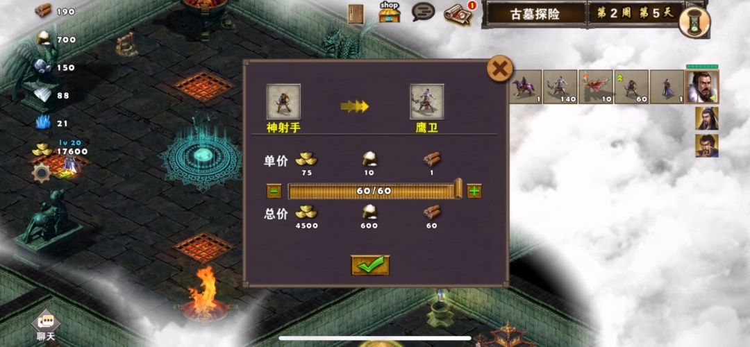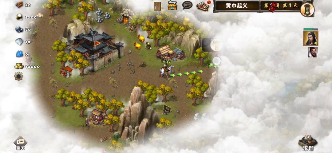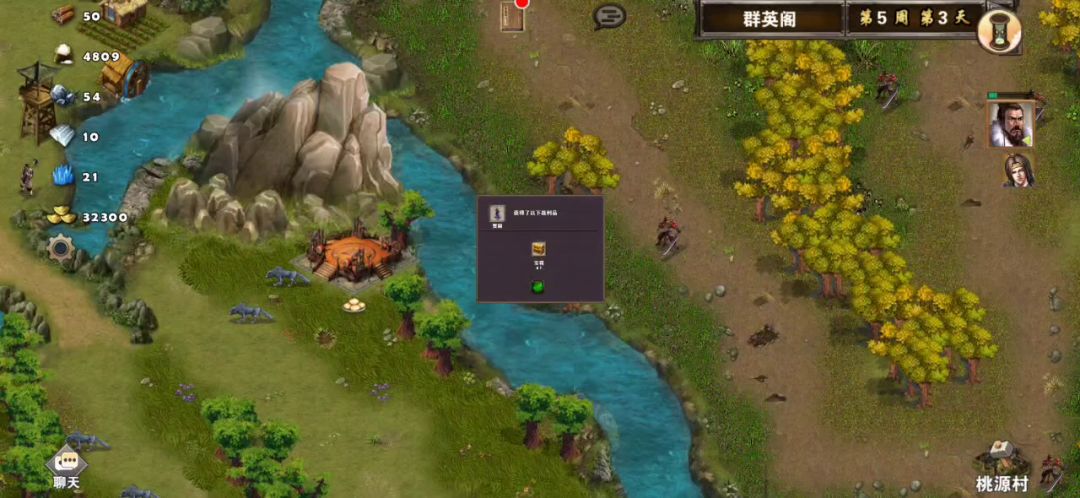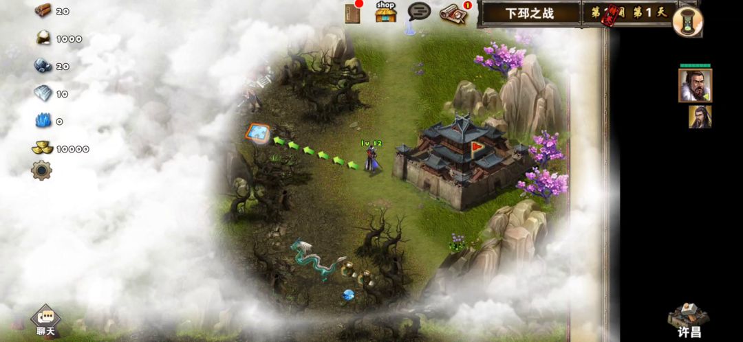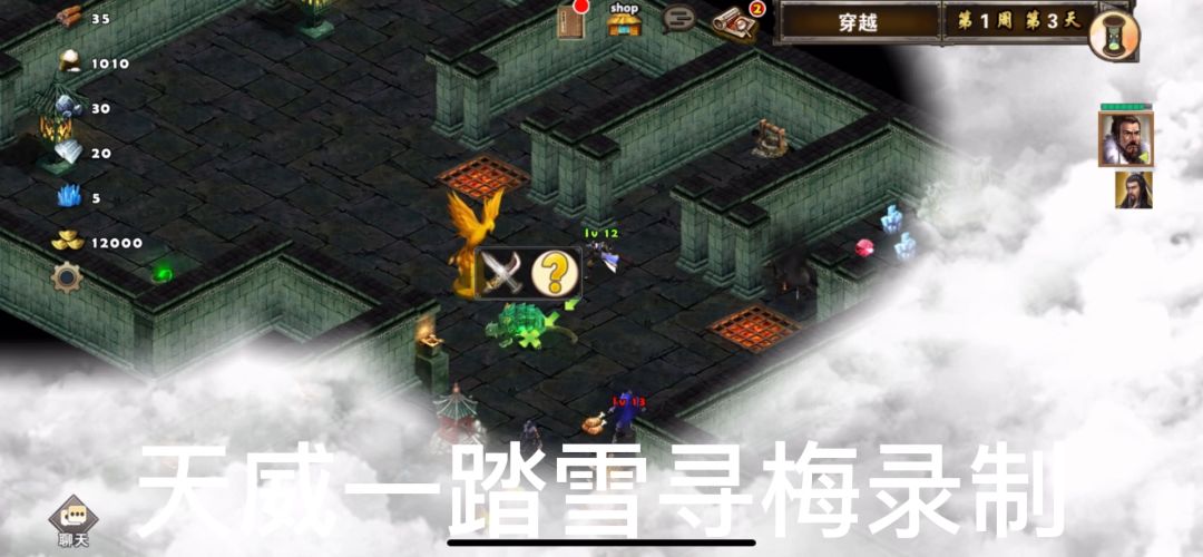 打败百年神兽救出刘备后,第三天打掉朱雀台小怪,先不要招朱雀,去打下面门口堵路的暗影骑士,里面有个武力宝石还有两个水晶可以捡,还有一个青龙崖可以招募青龙,水晶不够先不要招募,然后出来结束行动时旁边一个小boss暗影喋血会过来打你,不自量力,轻松打掉暗影喋血,第四天打掉凉亭守卫小怪访问凉亭,并把旁边资源捡了,下面门口有个堵路小怪轻松打掉,进去对话英雄曹操加入队伍,里面还有一个统率宝石,然后出来打掉神像