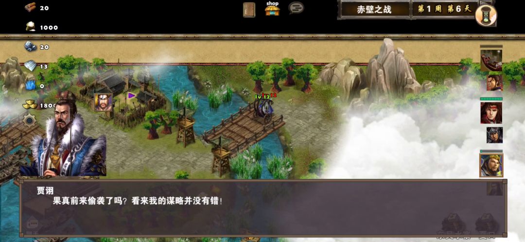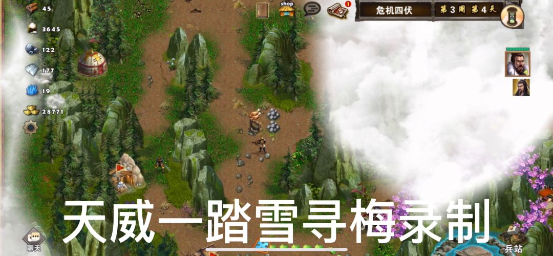 两次打败鹿清笃后,贾诩往右往下走可以看见有个朱雀台,打掉小怪把周围资源捡了,旁边有个3级府邸占领了,现在不够资源招募朱雀,从上面折返回去2周1可以看见有个boss赵志敬向小龙女方向移动,千万不要让她接触到小龙女,不然就游戏结束,直接过去打,先把对面兵清理差不多了,然后杀boss,最后清理剩下的兵,打败赵志敬后可以过去招募朱雀了,差不多可以够招募17个朱雀,然后回到对话刘备的桥头附近可以看见有一组神