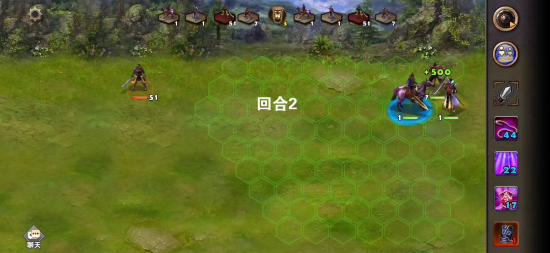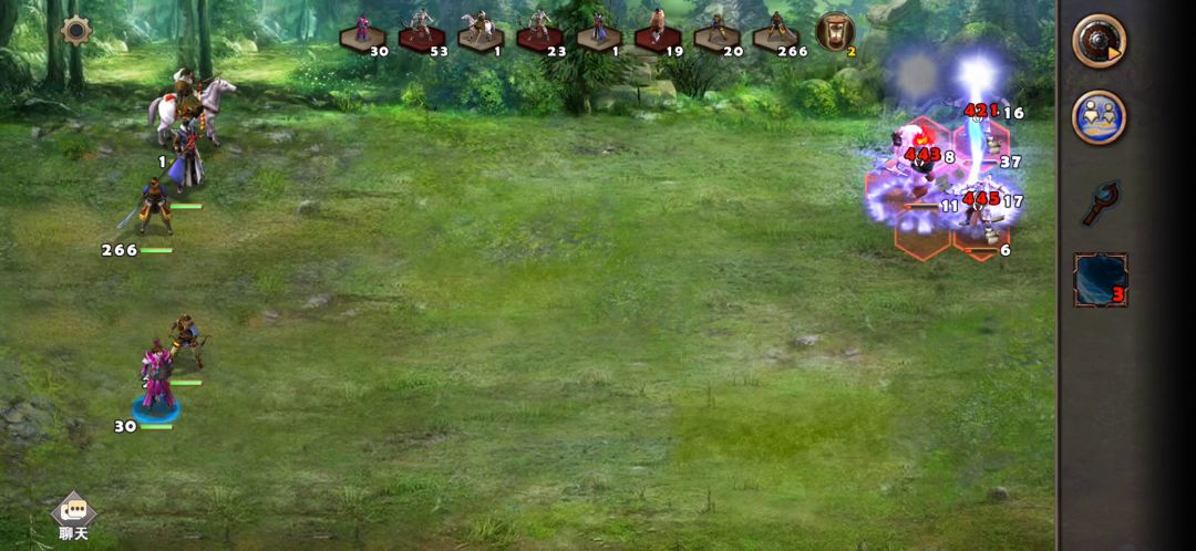 打败赵志敬后,尹志平会从上面城里出来,前面说了不要去占领城池和资源,尽快下来堵住尹志平,我由于地图没有探索出来,开始看不到尹志平的位置,后面差一点够不到打他,boss尹志平技能和夏侯惇类似,boss有点小强,注意分开站位,先杀对面兵,如果有能力2回合内能灭掉boss最好,不然就先打兵,最后打boss,英雄注意回血,鹰卫尽量不要被boss贴身,利用好英雄回血技能和朱雀回血,尽量无损打,打败尹志平后,