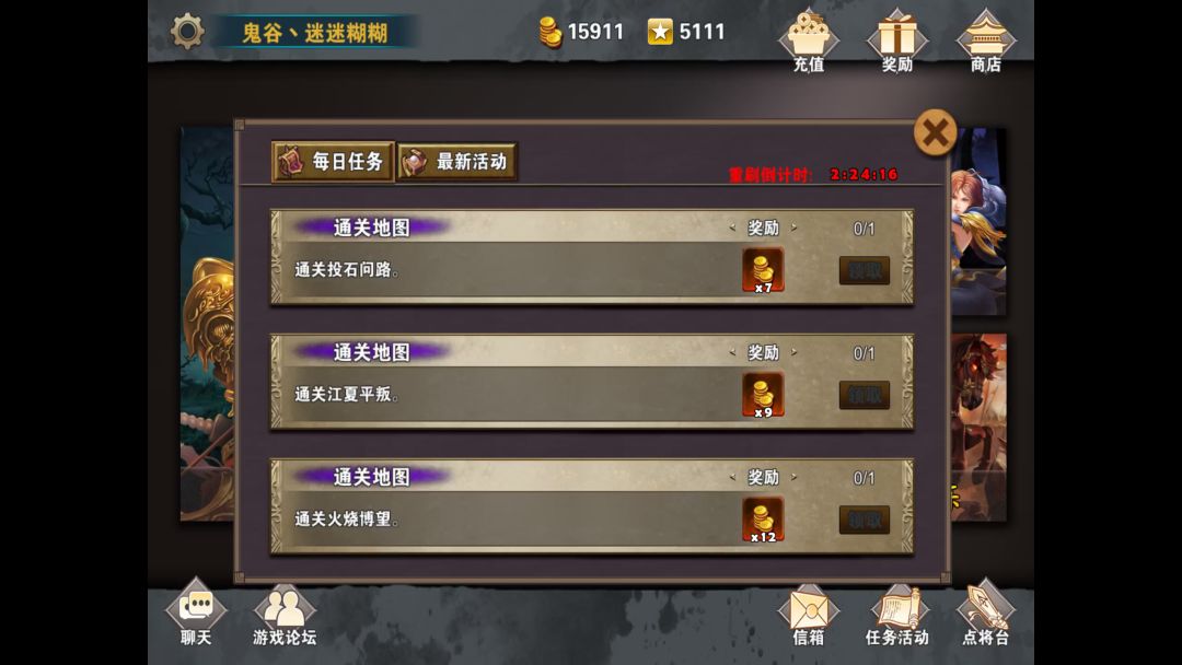今天的任务正好要求三天内通关奇袭乌巢,正常的通关方法显然无法达成,也就是说首通裸装许褚是无法完成这个任务的,所以把最好的装备给许褚后,直接攻打堵门蒋奇(终结正常剧情),然后加入曹操队伍,在曹老板的带领下直接攻城,两天完成任务。