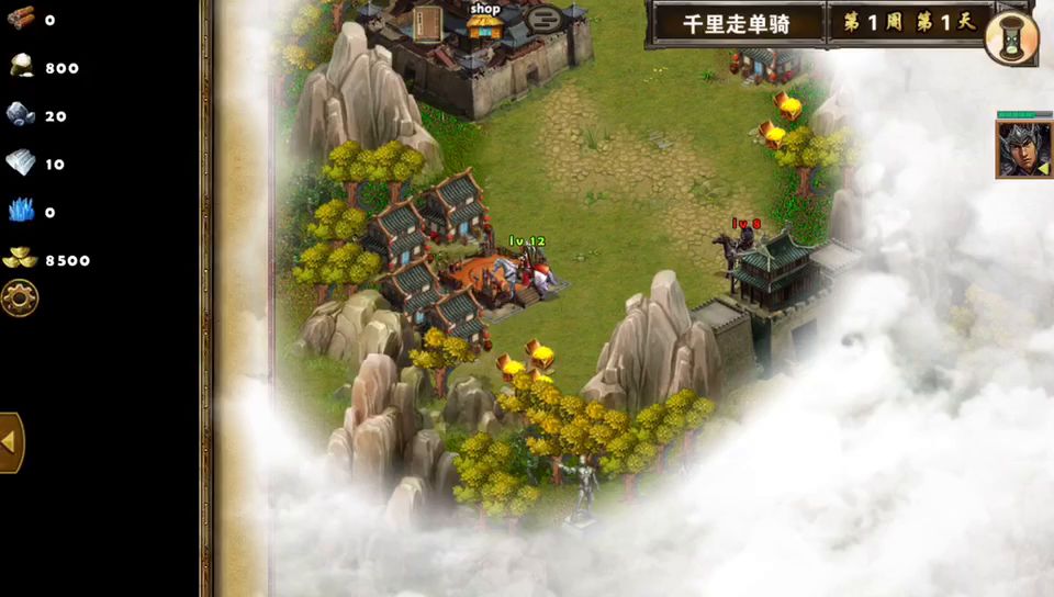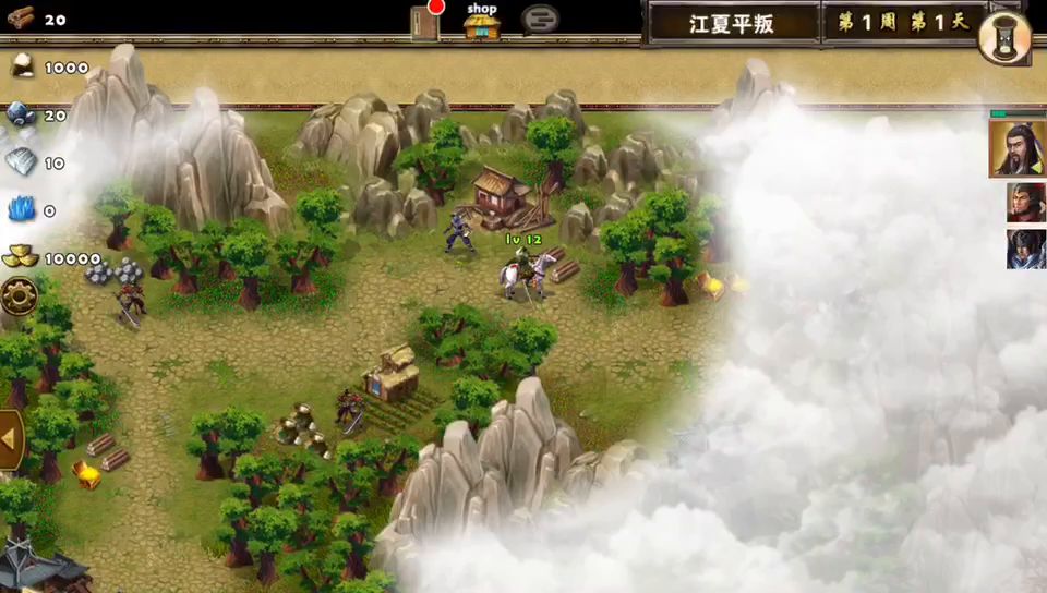 开局选了高智力的贾诩。他可是推图健将,没有他打不了的图,只有选不了贾诩的图,开局不用存兵,直接转着找敌人就行,别给敌人喘气的机会,不然他们的兵就多了不好打,如视频参考打打吧,挺好玩的。