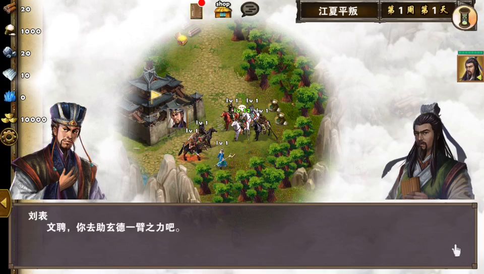 今天的日常让我去平叛江夏,给关羽装备好了,开局选上,看到有人玩法刘备,我也试试给刘备也套上智力装,拿着火扇,全程就三场战斗。1是杀小怪吃10统帅。2杀了守城门的敌兵~有点难度。3是斩杀出城的BOSS张武。陈孙