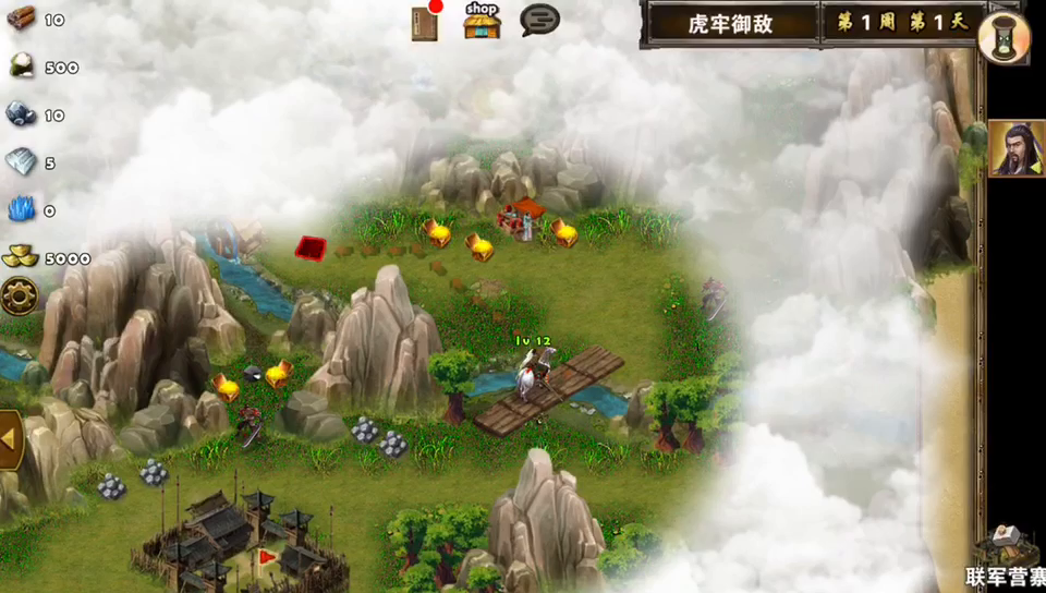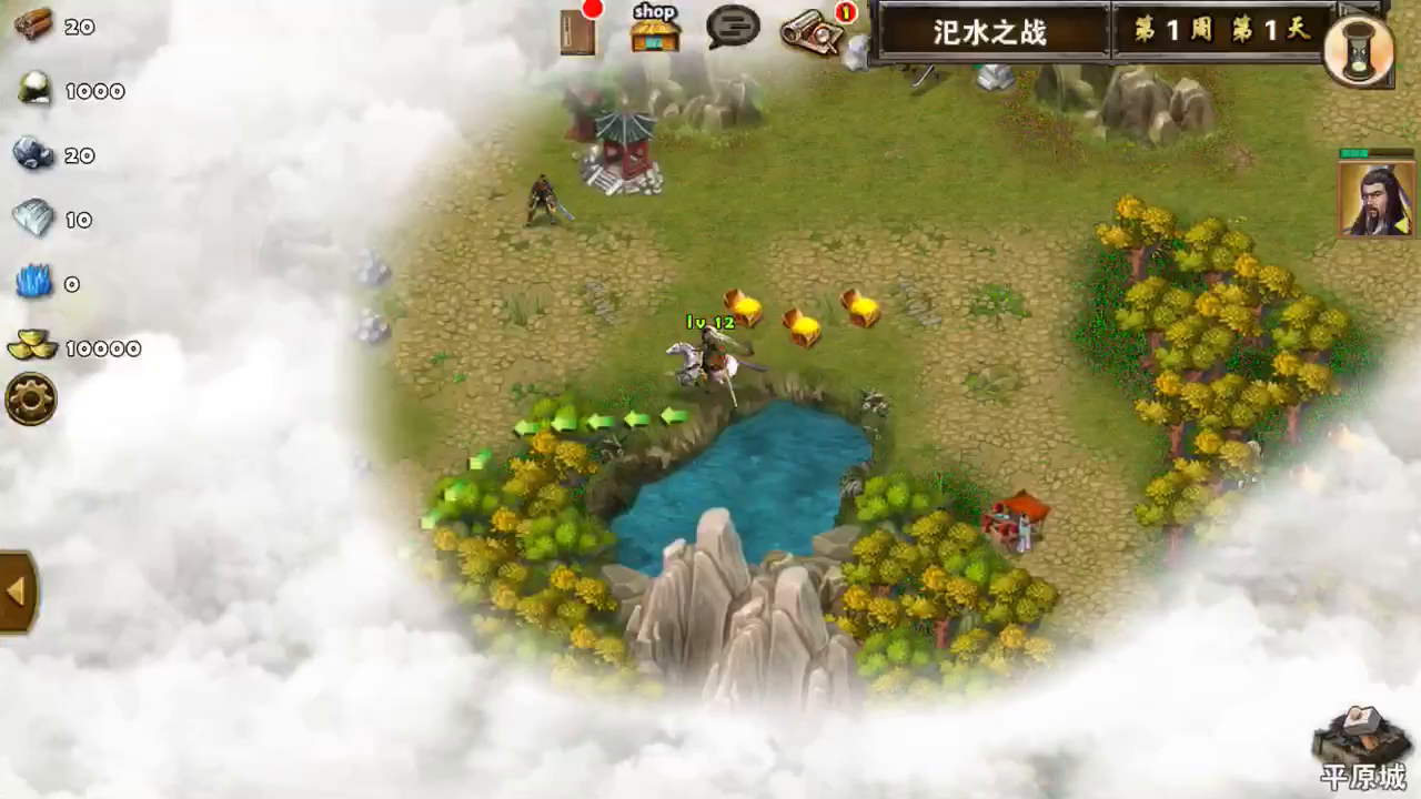 开局选用法系套的刘备,进入游戏后不用吃资源,直接快读的把地图扩展开,敌将都不难打,喜欢的可以打打练练手,就当娱乐了,3周一李儒就直接出来了,杀了他就过关拿宝箱了~!!