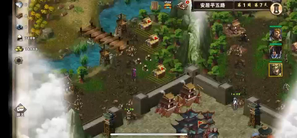 日常任务之一此图在最后一章完成可得10金币会员翻倍,稳妥的完成任务用时较长,开局敌人还没有到来先占领城外周边的资源(木材厂,矿石厂等),完成占领资源后三将分别堵住一个城门,敌人陆续到达后不会攻打武将,他们的目标是城中刘禅,会绕城走无将堵门的入口,看到快进入城门前,用一将堵住该门,敌人就会继续绕行去另一处无将的城门,反复操作等到资源存够能够建造骑兵营和龙崖后,购买青龙和和升级西凉铁骑,在加入黄月英后