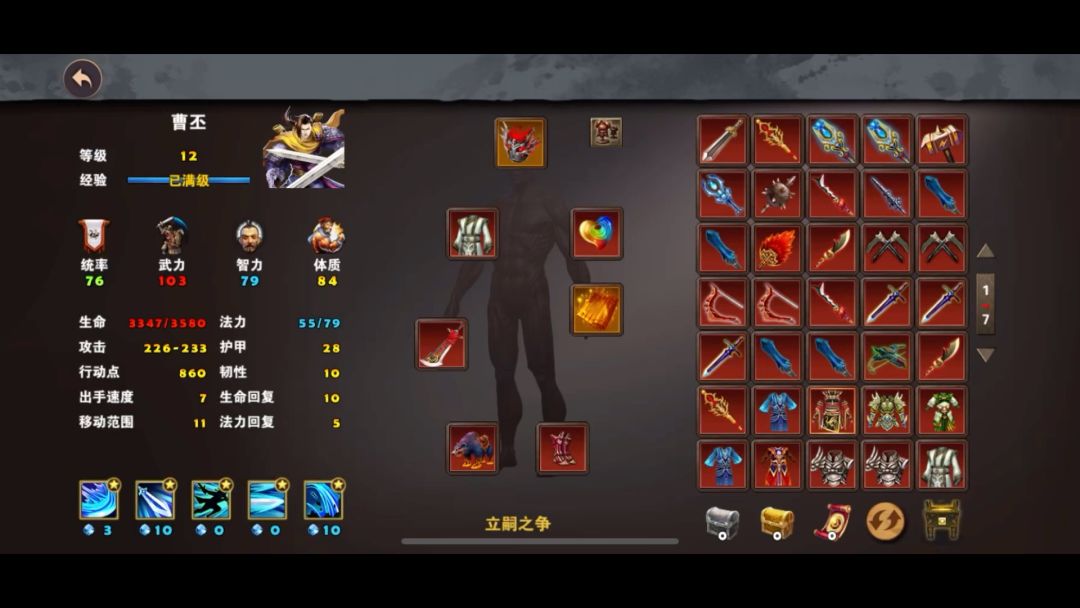 曹丕装备推荐:血煞、卧龙衣或者勇士战铠或者蛮皮斗铠、疯魔面具、五色石、鬼道天书、黑熊、雁荡靴, 司马懿装备推荐:九天惊雷杖、天璇法袍、水镜冠、红莲花灯、太平要术、招财猫、虎纹金缕鞋, 打法注意事项: ⒈要想三星过关,必须把兵全部解散,对话吕布选择不购买,吕布就会变成敌人, ⒉注意吕布装备有金镶凤羽衣和五色石,而且死后还会爆炸造成一格范围伤害,利用好曹丕2技能定身,当吕布残血时,不要靠近击杀,远