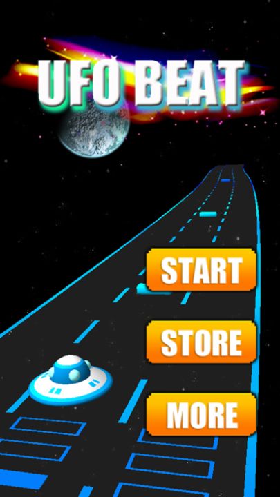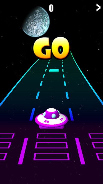 《音乐飞碟》是款结合了音乐节奏的飞碟小游戏。玩家需要收集彩色的色块,躲避灰色的色块。收集的色块会在游戏画面底部的方格内显示,当出现三个以上连续的色块便会消去得分。