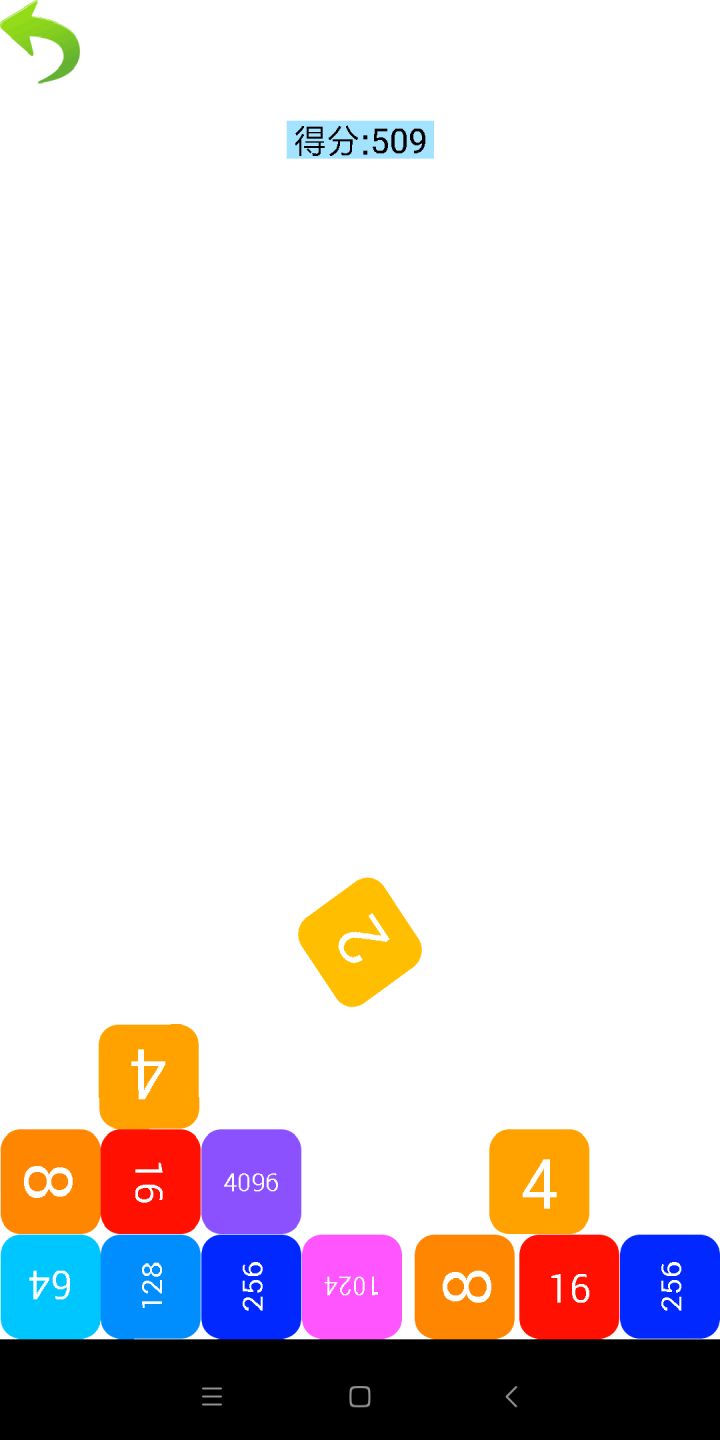 建议:方块改为圆,不滚动2、4、8、16……2^x……改为1、2、3、4……x……,减少1格字符,方便显示、计分