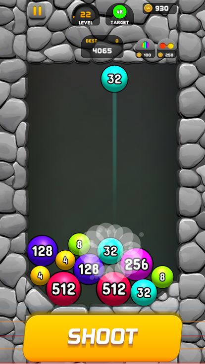 - Connect the balls with the same numbers and get one ball with a large number of 2