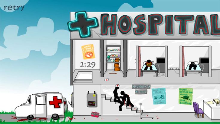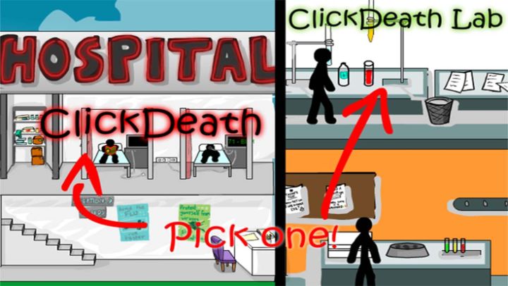 Create a bloody mess and complete two new stickman killing levels in Click DEATH hospital and laboratory!