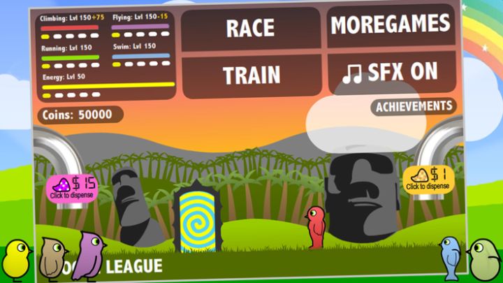 Collect coins and purchase upgrades to help your duck become world champion. Spend your money and purple SuperSeeds wisely.