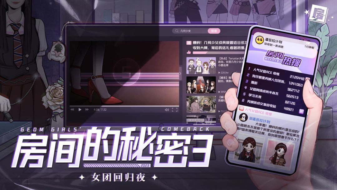 女团题材非恐解谜《房间的秘密3:女团回归夜》今日正式上线! 大热女团回归之夜,意外降临附身偶像! 塌房危机悄然降临,“你们”能否顺利回归? 回归迷局开启,请你入局,真相等你揭开。 ▼下载指路▼ ————通关有礼———— 【活动时间】2023年9月20日—2023年10月9日 【参与方式】本帖评论区分享你的游戏通关截图 【活动奖励】从符合参与条件的玩家中,10月9日随机抽取1位送出<房3通关礼包>×
