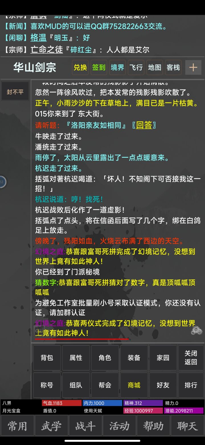 17年接触MUD游戏,玩了一段时间弃游了。现在回来玩这个服,感觉非常不错。!福利也是很多。