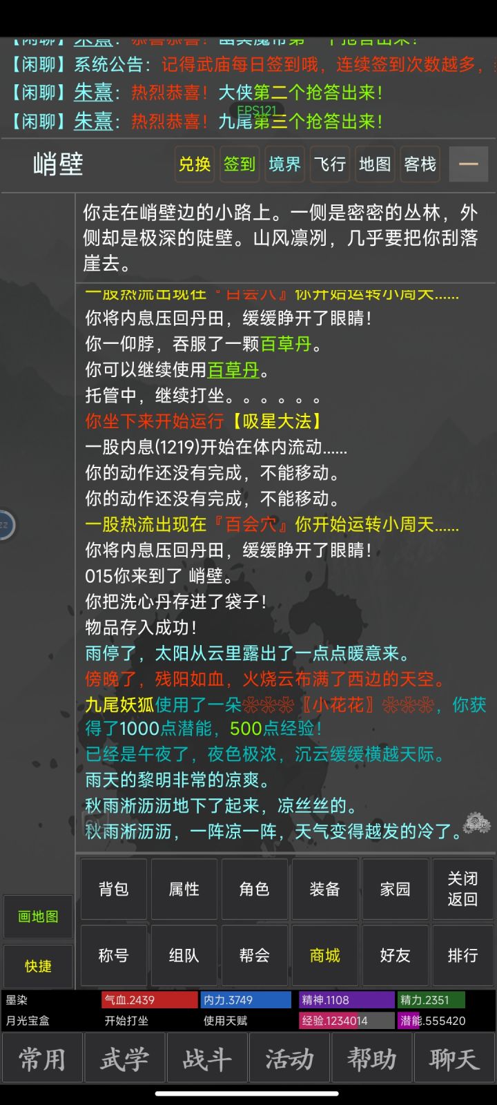 17年接触MUD游戏,玩了一段时间弃游了。现在回来玩这个服,感觉非常不错。!福利也是很多。