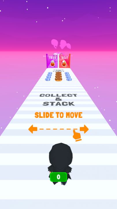 Collect tricks or treats. Feed them to correct stash. Watch them pour to the bucket.