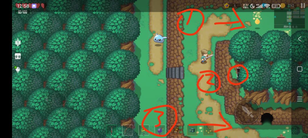 记录一下宝箱该怎么拿吧(按游戏流程来我能尽量拿到的)一边玩一边更新吧,没记录的欢迎补充 第1个,雨叶岛0.0(出生点),这里进去就行了 第2个,雨叶岛0.1,打了这棵草 第3个,雨叶岛0.-2,上台阶,往下右走,再上台阶,树中间穿行 第4个,雨叶岛1.-2,接第三个,上台阶往上右走,进洞做任务,炸开下方墙壁,拿到重要道具(qz大佬补充) 第5个,雨岩洞1.1,得从雨岩洞1.2推石头,大概如图 第6