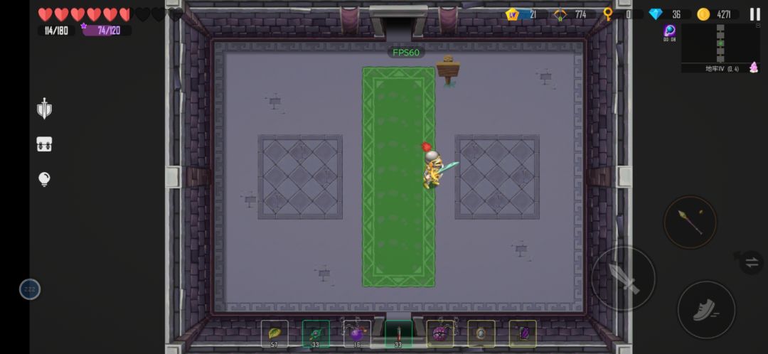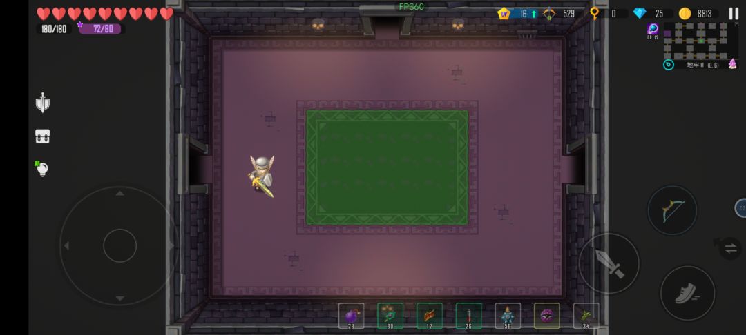 地牢二中0,6位置紫闪石闪烁极限,在绿地毯左下位置用魔眼出一个魔金块