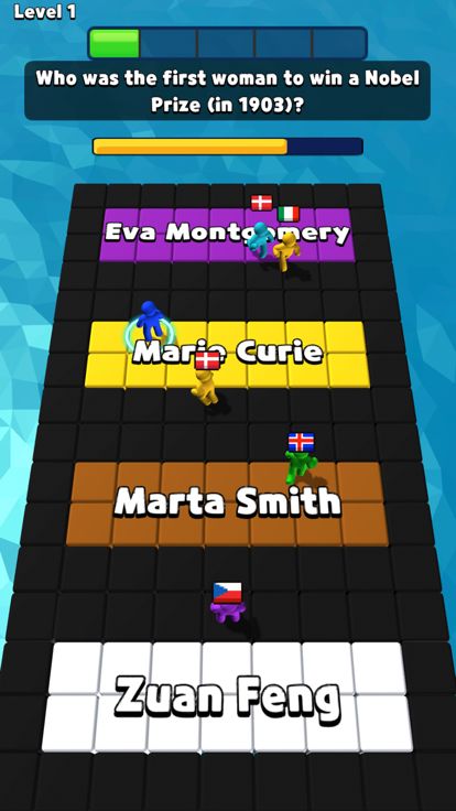 Every round a new question will pop up & the answers will pop up on platforms. Run to the platform that contains to continue on. If you answer is wrong the platform will drop and you'll fall & lose. Play against people from all over the world!