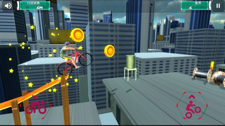 在楼群中穿梭,在高空中秀车技!真实的3d体验,多种关卡等您挑战,show出您的自行车特技,快来试玩吧!