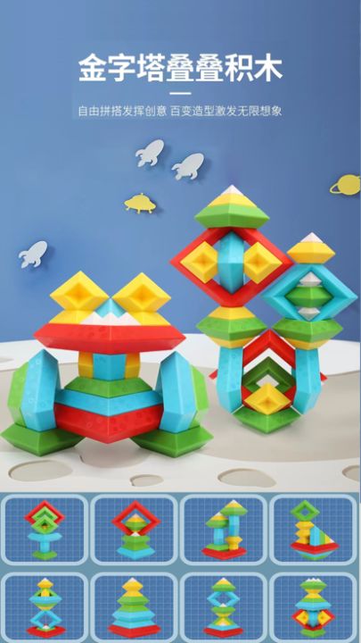 你能在《金字塔积木》中成为终极创作大师吗? 把各种各样的积木搭起来发挥创意。
