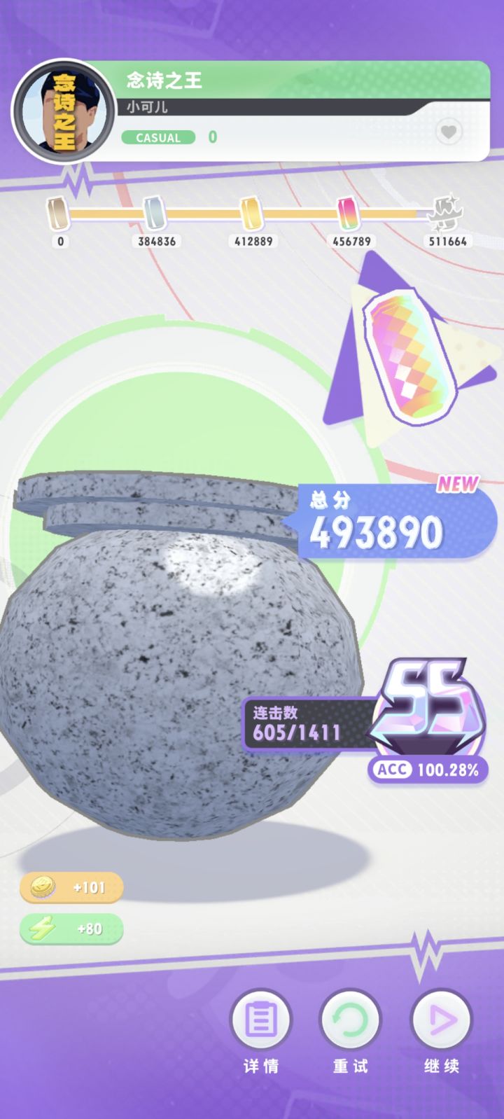分数高是因为蹭避比较多,就经过障碍物的时候,会有一个完全闪避,打出一个就加500分,然后EX的意思就是最高评级,要打出ap+才有这个评价