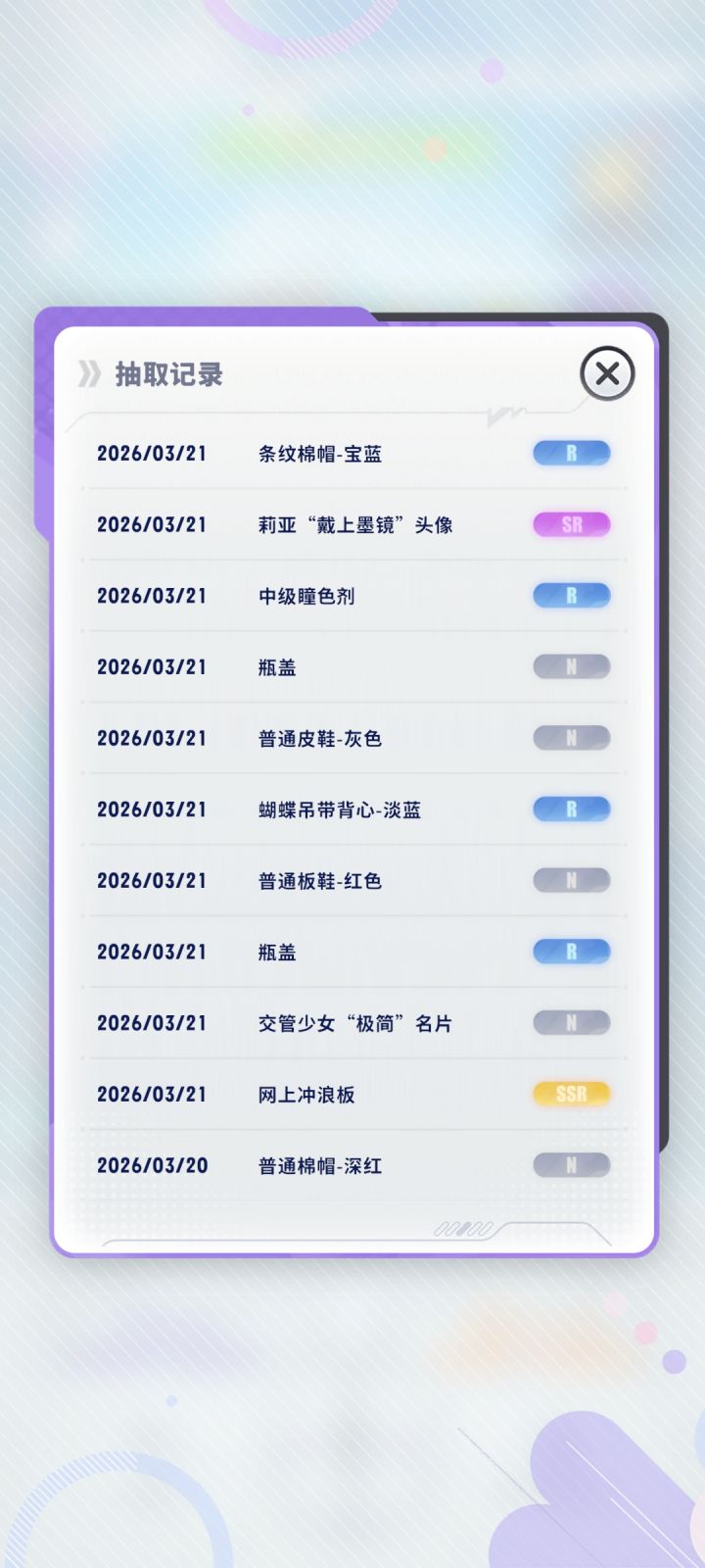 10抽里出的滑板,不知道具体是第几抽,卡池界面显示距下次保底差69,我以为是最后一抽出的,但看记录不是最后一抽?以哪里为准呢,如果看记录,卡池那里是不是应该显示距下次保底61抽,还是说记录显示问题,默认把ssr放第一抽了?还是补充一下吧,其实没跳过抽池结果,第一个出的紫,第二个金,其他的好像因为已经拥有所以自动跳过,虽然不知道是第几抽出金但应该不是第一抽,那这个记录显示最好还是按顺