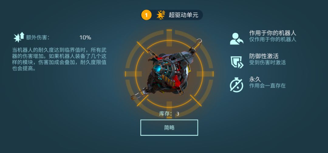 接上回!小坦为大家介绍了“硝基单元”、“反控制单元”、“修理放大器”、“隐身单元”、“核放大器”、“背水一战”六个被动模块!还没看的指挥官可以点击此处查看往期内容>>(两篇跳转) 本期,小坦为大家带来能够为机甲提供额外伤害的”超驱动单元”、提升生存能力的”重型护甲套件“、适合萌新指挥官的“热核反应堆”三个被动强化模块的解析内容! 【超驱动单元】 “超驱动单元”是可以直接提升武器伤害能力的“通用输出