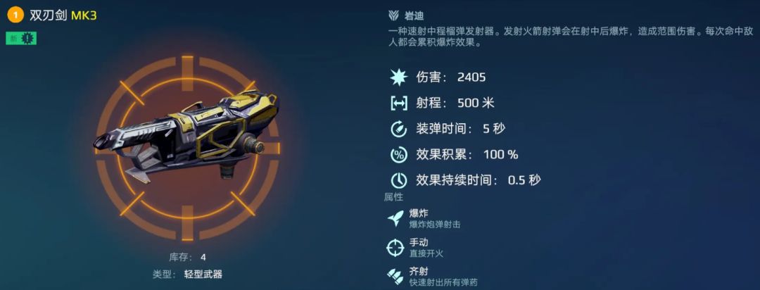 高护甲多护盾敌人打不动怎么办? 抱团推塔无法压制怎么办? 全新武器火榴弹系列帮你解决! 本期内容为指挥官带来“双刃剑”、“双刃斧”、“战拳”——“火榴弹”系列新武器爆料! 武器简析 "火榴弹"系列武器是拥有连续多段高射速且具有范围爆炸效果的榴弹型武器。 其搭载的大角度自动索敌的辅助瞄准系统,使得射击精准度提高!发射的炮弹飞行速度快! 指挥官在不管是火力压制、跑打位移、风筝拉扯,甚至是追击收割,打击
