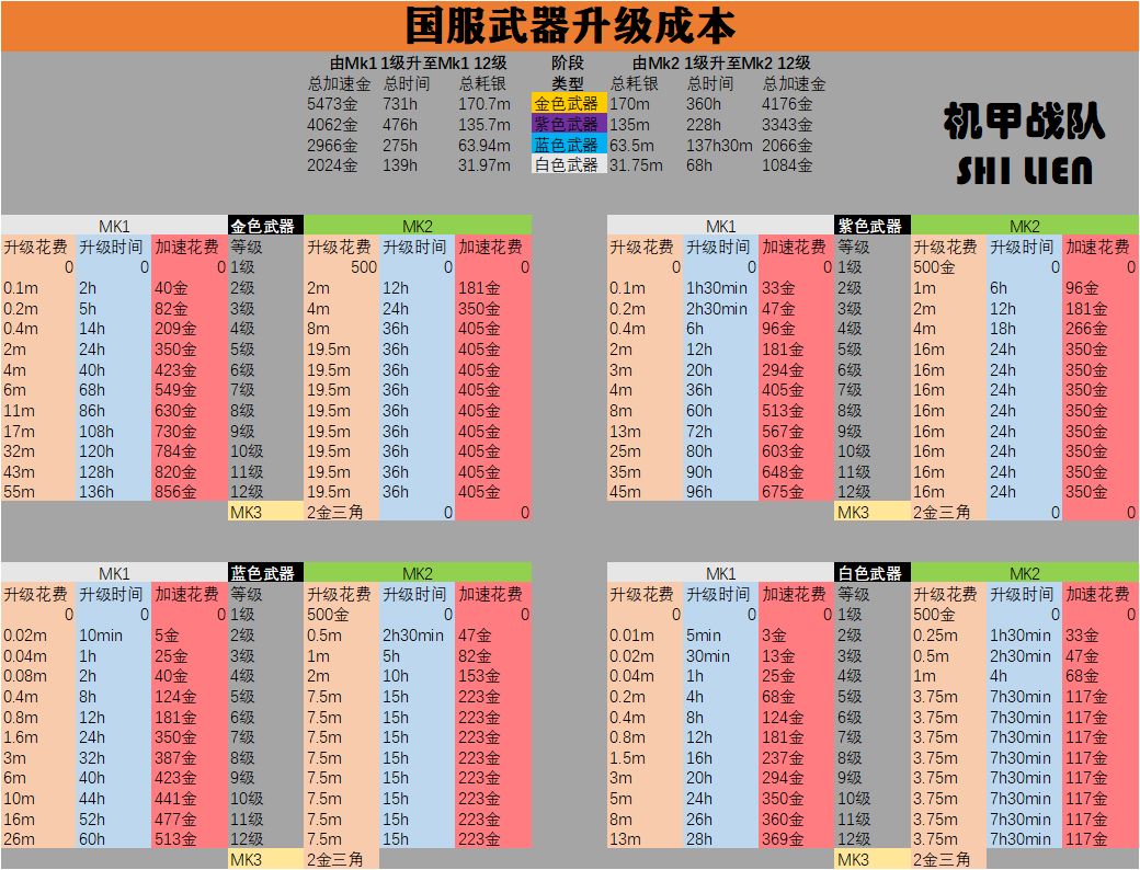 这鸟游戏真是越玩越难受o(╥﹏╥)o,好几个月前就冠军了,这么几个月走来,踩过这么多坑,越想越难受,希望能做点攻略,给大家避开一些坑 因为篇幅有限,这一期只说武器 首先,我将所有值得使用的武器全部用勾号标记了出来,没有勾的武器,一律不建议使用或培养 白色武器:500米机枪,性价比高,火力中,过渡武器,可培养至MK1 12,最高可以培养至MK2 12 蓝色武器:炸类武器,轻槽红炸,中槽黄炸,重槽火箭
