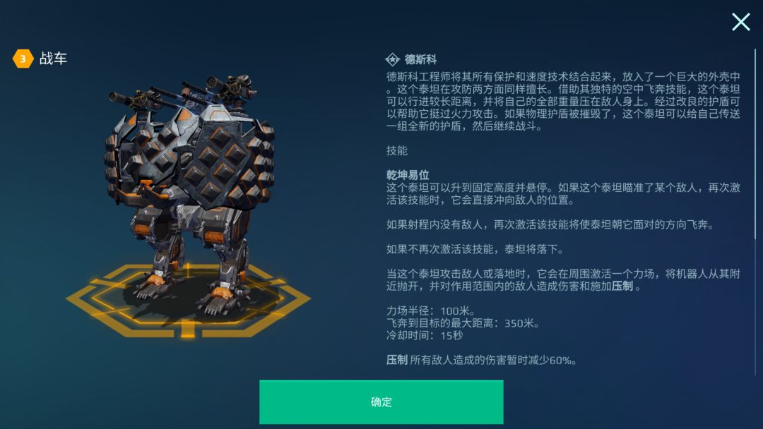 泰坦[战车]既可突进追击,又能固守御敌;不畏远程轰炸,擅长近战对敌。如何才能驾驭这台格斗神机在战场大展风采,且看小坦深度解析! 机甲简析 相较于同样被冠以“格斗神器”称号的摔角王,战车同样具备最高35%的灰免能力,拥有中远距离的突进追击能力,同时其技能可对一定范围内的敌人产生压制效果。在输出方面,战车的[乾坤易位]技能相较于摔角王的[青蛙扑击],冷却时间缩短了5秒。相较于摔角王的手动判定,战车的位